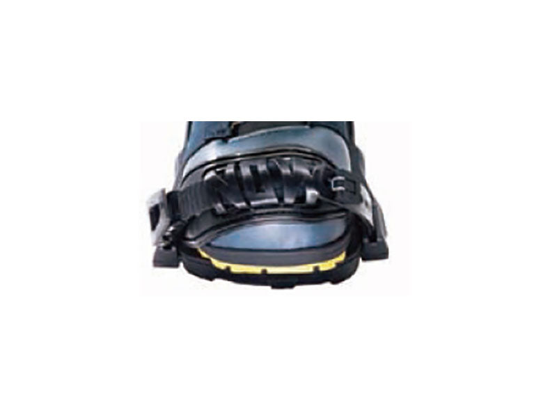 ラバー素材によってグリップ力が向上したトゥストラップ。つま先の斜め上から、またはつま先の上から下方向へ締める使い方も想定したデザインです。