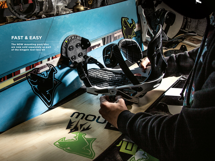 一つのビンディングを複数のボードに直感的に使い分けたい方におススメの贅沢セットです。付属のポストとディスクを、事前に他のボードにセッティングしておけば、準備は完了です。ボードを交換したい時は、キングピンツールレス2.0のネジを手回しでポストより上部分を外し、あらかじめ用意した他のボードにセット、キングピンのネジを手回しで締めて完了。たったこれだけの作業で使用ボードの交換ができます。