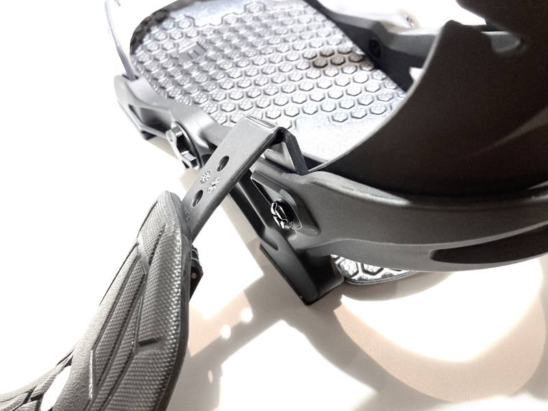 アンクルストラップをビンディング本体に接続する新型スライドストラップ。ヒンジコネクト式でアンクルストラップを180度に開放するため、容易な足入れが可能になります。
